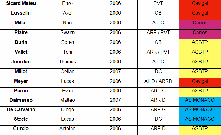– Inès GHRIBI HB Asbtp Nice – Justina TYCHIJ CARROS HBC – Chiara LEBRET et Assetou BEARET OGC NICE – Alexandra LEJEAN PAYS DE GRASSE HB – Chiara REPETTO RIVIERA HB – Whitney SEMEDO MONTEIRO Albane DEROCHE Justine LIBOUREL Lua PAINPARY US Cagnes Hand